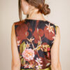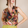 Блузка из атласной ткани со стильным принтом, без рукавов, горловина свободно ниспадает на грудь, покрой прямой.