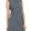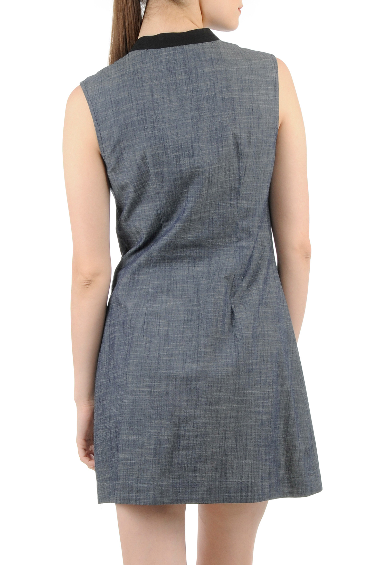 Джинсовое платье с перламутровыми пуговицами, без рукавов, с переде прорезные карманы, короткая длина. Цвет: Индиго/черный.
