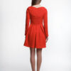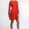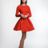 Мини платье из качественной костюмной ткани идеально подойдет как для бизнес встреч, так и для вечеринок. Вытачки делают акцент на талии, а пышная юбка скроет мелкие изъяны фигуры. Длинные прямые рукава с изысканным задним швом добавляют оригинальности модели. Модель застегивается на скрытую молнию. Воротник-лодочка позволяет добавлять изысканные украшения, чтобы создавать различные образы.