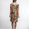 Легкое платье свободного кроя с открытыми плечами демонстрирует тонкие линии зоны декольте. Рукава-воланы и плиссированный подол платья создают игривый образ. Крупный цветочный рисунок на платье не оставит равнодушной ни одну модницу. Эта модель хорошо сочетается с босоножками на платформе, летничи ботильонами и туфлями-лодочками.