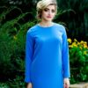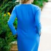 Классическое платье голубого цвета, с врезными боковыми карманами, изготовлено из костюмной итальянской ткани, на спинке потайная молния. Состав: вискоза 65 % полиэстер 35 %
