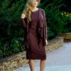 Однотонное элегантное платье облегающего кроя, цвет капучино. Рукав длинный прямой, горловина – лодочка, длина – миди. Эта модель подчеркнет вашу женственность и подойдет на все случаи жизни. В подарок к стильному платью – модная шапочка из такого же материала! Удачный выбор для вашего гардероба!