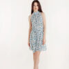 Нежное, женственное платье в голубой цветочек со вставкой из гипюра на спине способно придать образу своей обладательницы нотку загадочности и хрупкости.